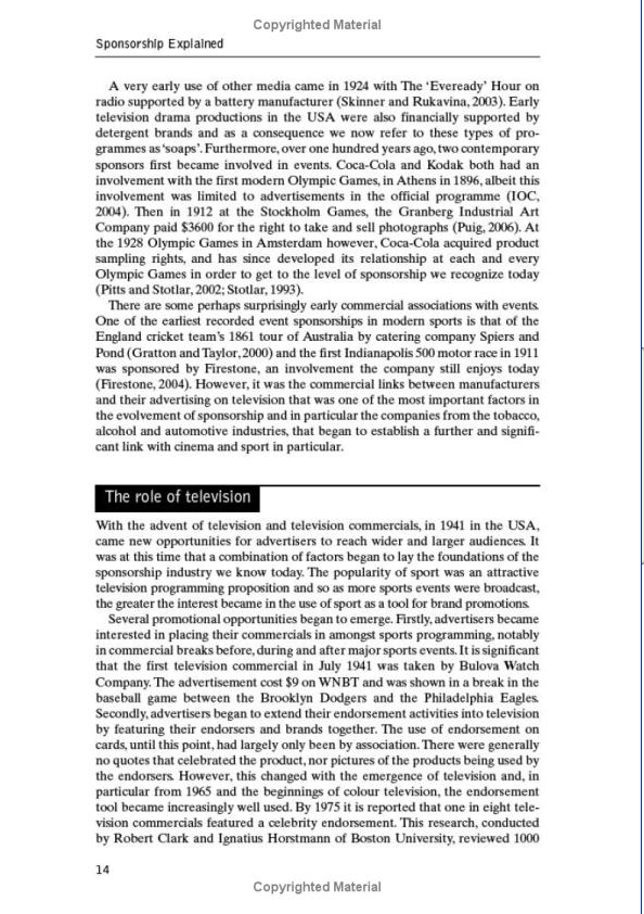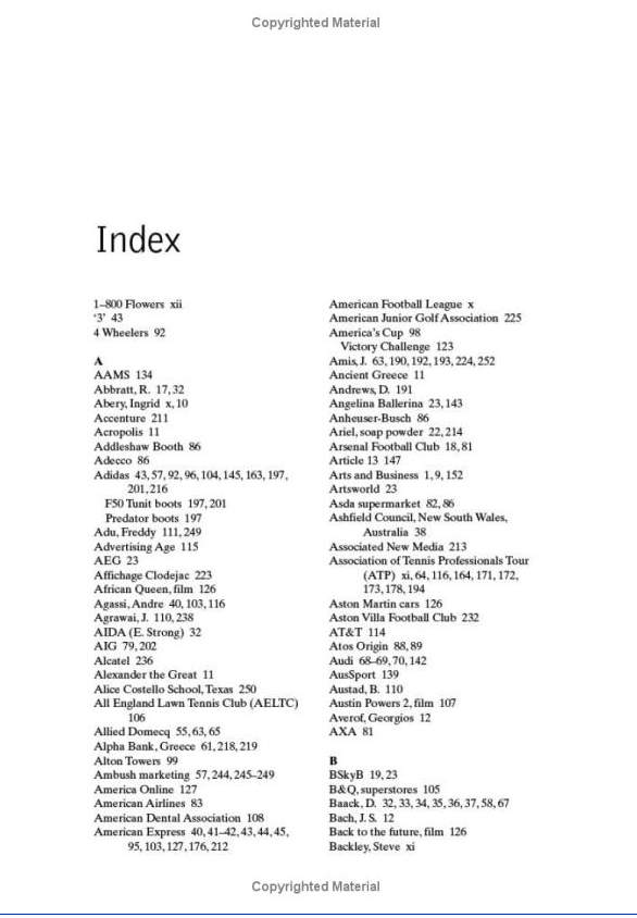 Wie Sponsoren die Rechte ausnutzen können: Nutzung von allen Kanälen und deren Vernetzung. Bsp von Gillette, Toshiba, Hyundai (FIFA 2006 Tuscon in Printmedia u. aber keine Nennung bzw. Verweis zu FIFA), Ineos, McDonald's (Go Active Happy Meals) u. Ariel (Tim Henman + Wimbledon) auf Seite 214. Bsp. Microsoft, Toyota, Warner Brothers, Samsung, budweiser, SoBe, Heineken, Swatch,