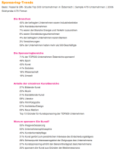 >> weltweit wurden 2006 33,8 Milliarden US-$ Sponsoringmittel eingesetzt ( +10,8 % gegenüber 2005) >> Europa brachte es auf 9,6 Milliarden US-$ >> Das Kunstsponsoringvolumen der österreichischen Wirtschaft wird auf rund 43 Millionen € geschätzt