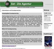 arketingidee Kunstsponsoring Das Kunstsponsoring wird in der Bundesrepublik Deutschland erst seit Mitte der 80er Jahre als Instrument der unternehmerischen Kommunikationspolitik verstärkt eingesetzt und hat seitdem eine sprunghafte Entwicklung durchlaufen. Diese Entwicklung folgt unter anderem der unternehmerischen Erkenntnis, daß es bei einer zunehmenden Ähnlichkeit der Produkte selbst es nicht mehr ausreicht, ausschließlich über die klassischen "Werbe-" Instrumente Zielgruppen anzusprechen. Es bedarf den Beleg für gesellschaftliche Verantwortung, um sich von der Konkurrenz abzuheben. Motive für Kunstsponsoring Ein gutes Kunstsponsoring schafft ein positives Image des Unternehmens nach außen. Angesprochen wird eine anspruchsvolle, gebildete Zielgruppe die - je nach Unternehmen - als Imageträger, Multiplikator oder Kunde für das Unternehmen interessant sein kann. Kunstsponsoring ist auch Teil der innerbetrieblichen Kommunikation. Es hat Bedeutungen in Bereichen von Image im Unternehmen, "Markenbewußtsein" der Mitarbeiter. Eine Einbeziehung der Mitarbeiter sollte deshalb Teil der Planung eines Sponsoring-Projektes sein. Motive Kunstsponsoring >>