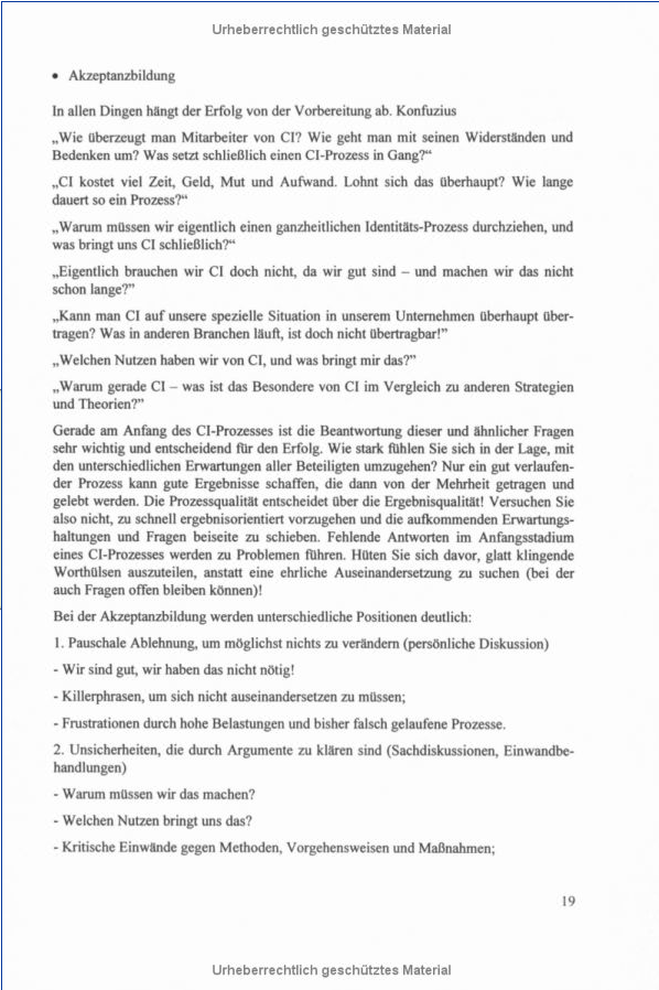 Concusio S. 261 - Im Grunde ist alles sehr einfach! Es geht um 2 Ebenen: Eine Identität muss geschaffen werden, und sie muss von der Umwelt wahrgenommen werden.