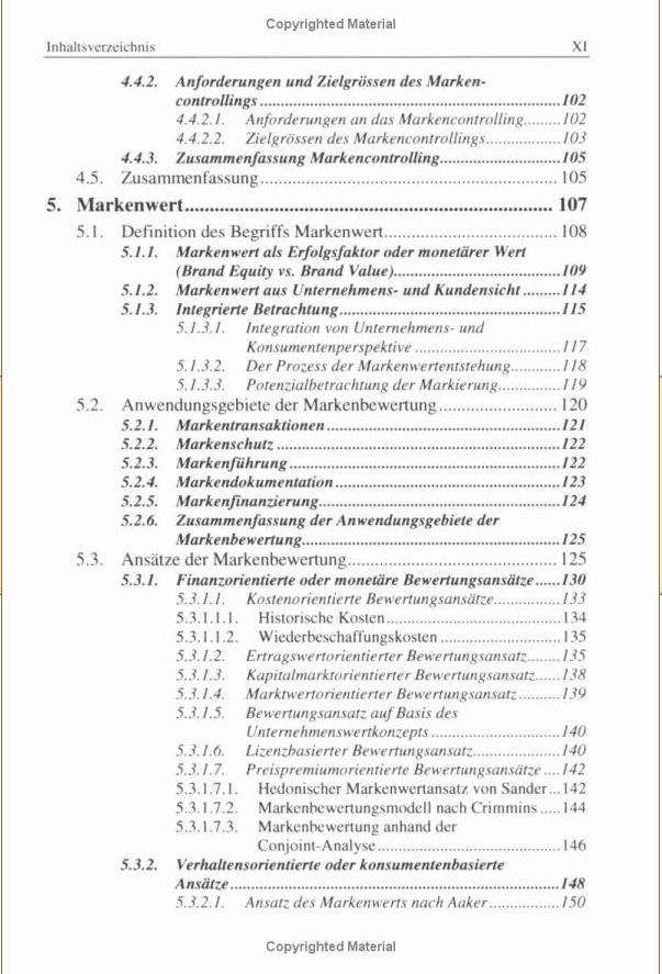 - Markenbewertung nach Interbrand S. 165 (Segmentierung, Finanzanalyse, Analyse der Nachfragefaktoren, Wettbewerbsanalyse) Grafik S. 167