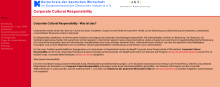 Für die lange Tradition gesellschaftlichen Engagements von Unternehmen in Deutschland hat sich der Begriff Corporate Social Responsibility (CSR) etabliert. Corporate Cultural Responsibility (CCR) ist die notwendige Fokussierung dieses Konzepts auf das Kulturelle. Der Begriff wurde 2004 vom Siemens Arts Program ( www.siemensartsprogram.de) sowie Prof. Dr. Michael Hutter, Universität Witten/Herdecke, ( www.uni-wh.de) eingeführt.